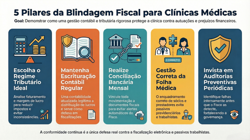 Essa prática reduz significativamente a incidência de autuações fiscais em clínicas médicas e fortalece a governança.
