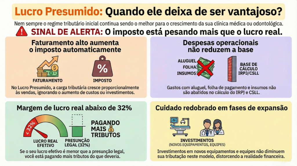 Nessas situações, o lucro presumido para médicos e dentistas passa a gerar tributação acima da capacidade real do negócio.